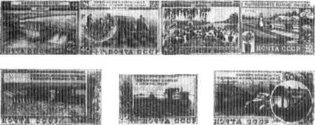 1772. 40 к. – Гидроэлектростанция на селе. Текст: «Широко развернуть строительство колхозных гидроэлектростанций!» – синяя, зеленая …….. –35 –15