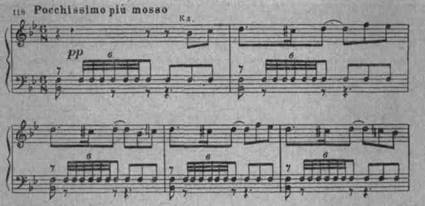 Их прототипом можно считать вступительную гармоническую последовательность из увертюры «Сон в летнюю ночь» Мендельсона в аккомпанементе передают дыхание морской стихии, рисуют бесконечную череду волн, покрывающихся на гребнях «беляками» пены: