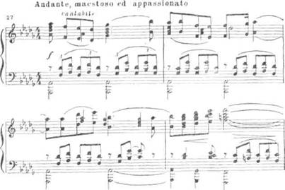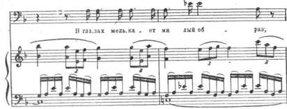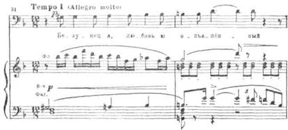 Вслед за восклицанием «Красавица ль Снегурочка?», оттененными возбужденными фразами струнных (из вступления к арии пролога), у гобоя появляется новый мотив, построенный на полутоновых «стонущих» интонациях. Он выражает, по словам Римского-Корсакова, «ревнивое горе Снегурочки» (впервые он бегло проходит в сцене поцелуя):
