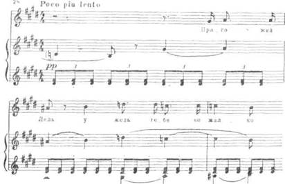 Развитие мотива ревнивого горя прерывается горестно молящим речитативом «О, разве лучше Снегурочки Купава?» Заключение ариозо, нежное, ласковое и умиротворенное по настроению («Пригожий Лель, люби меня»), носит песенный характер. В нем встречаются мелодические обороты из ариетты Снегурочки первого действия. Только в этом эпизоде ариозо прочно устанавливается главная тональность Ми мажор (она вообще играет большую роль в музыкальной характеристике Снегурочки), подготовленная тональным развитием предшествующих эпизодов ариозо, в которых затрагивается тональность Ля мажор (субдоминанта Ми мажора) и многократно звучат доминантовые гармонии главной тональности.