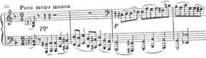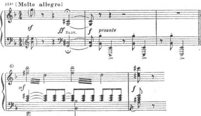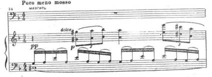 Эта сцена отличается фантастичностью оркестровых красок. В ней нашли широкое применение увеличенные гармонии, которые связываются здесь с мрачным, сказочным образом Лешего. Можно сослаться хотя бы на многократно (перед каждым из «чудес») звучащую увеличенную кварту четырех закрытых валторн, скачки басов на тритон вниз, целотонный аккордовый мотив объятий Лешего: