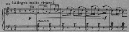 Пятый танец (Фа мажор) — портрет феи Пылких, сильных страстей. Это — танец-галоп в остром, подвижном ритме, с сохраняющимся на .всем протяжении характерным затактом: