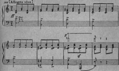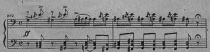 Эта холодная, мертвящая музыка создает большое драматическое напряжение. Следует стремительный танец уродливой свиты Карабос, основанной на интонациях темы злой феи. Ненова — резкий контраст: с появлением феи Сирени звучит уже знакомая по интродукции широкая, напевная тема. Снова все озаряется светом, и вновь пробуждаются надежды на счастливое будущее Авроры. В последний раз появляется злобная тема Карабос: разъяренная колдунья со своей свитой покидает бал. Музыка пролога заканчивается светлой ми-мажорной темой Сирени.