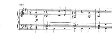 Эта тема, родственная одной из фраз Ленского в ариозо первой картины (см. выше, пример 190) предвосхищает одновременно и тему Ленского из пятой картины «Что день грядущий мне готовит». Для всех этих тем характерно начало мелодии с вершины с последующим плавным и широким спуском.