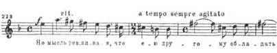 Его переживания раскрываются и в следующем ариозном эпизоде «Ты меня не знаешь…» (ответ Германа на слова Томского «Найдем другую…»). По эмоционально-напряженному характеру музыки этот эпизод напоминает начало сцены письма Татьяны из оперы «Евгений Онегин».