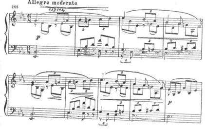 Светлый, радостный характер музыки устанавливается уже в фортепианном вступлении, основанном на устремленном вверх хроматическом движении мелодии и ее гаммаобразном возвращении к исходному звуку; фоном служат триольное движение в средних голосах и органный пункт на тонике Ми-бемоль мажора в басу.