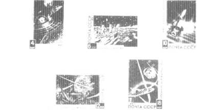 Рисунки А. Соколова (3545, 3547–3549) и космонавта А. Леонова (3546) Офсет. Греб. 12:12 ½ (3545, 3547, 3549) и 12 ½:12 (3546, 3548).