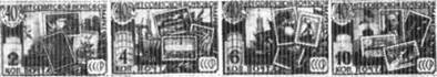 На марках – почтовые миниатюры прежних выпусков и здание Центрального телеграфа в Москве.