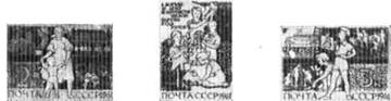 2585. 3 к. – Горнист. Пионерка, сажающая дерево. Туристы и юннаты – темно–фиолетовая, оливково–коричневая …… –10 –03