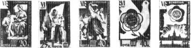 2031. 10 к. – Торжественное шествие молодежи с флагом фестиваля – ярко–фиолетовая, лимонно–желтая, зеленая (май) …..–40 –10