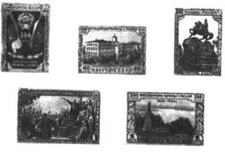 1762. 1 р. – Государственные флаги УССР и РСФСР на фоне Государственного герба СССР – многоцветная …….. 1.– –40