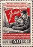 1658. 40 к. – Советские люди подписываются под Обращением Всемирного Совета Мира о заключении Пакта мира между пятью великими державами. Знамя с текстом «За мир» и Спасская башня Московского Кремля (архитектор П. Солари) – черно–серая, красная ……..1.– –40
