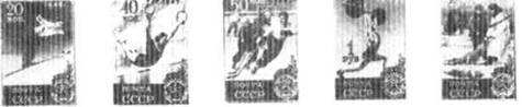 Рисунки В. Завьялова. П. глубокая на бумаге со слабым фоном в цвете марки. Лин. 12 ½.