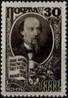 1098. 30 к. – Портрет Н. А. Некрасова по картине И. Крамского (1877, ГТГ). Цветы и раскрытая книга со строками из поэмы «Кому на Руси жить хорошо»: «Доля народа, счастье его – свет и свобода, прежде всего» – черно–серая ……. –30 –10