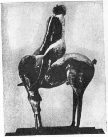Марини — монументалист по самому характеру своего творчества Его скульптуры требуют света, воздуха и дальней точки отхода. «Внутренняя динамика, выраженная в неподвижной пластической форме» (по выражению советского исследователя), есть качество, позволяющее использовать произведения Марини как городскую скульптуру. В 1958 году в Гааге, в одном из новых районов был установлен «Монументальный всадник»* — первый опыт Марини в этом жанре. Скульптору предстояла трудная задача: связать статую с сухими плоскостями стандартных домов-коробок. Марини дал остроумное решение, подчеркнув конструктивную основу фигуры, уподобив ее некоему фантастическому архитектурному памятнику.